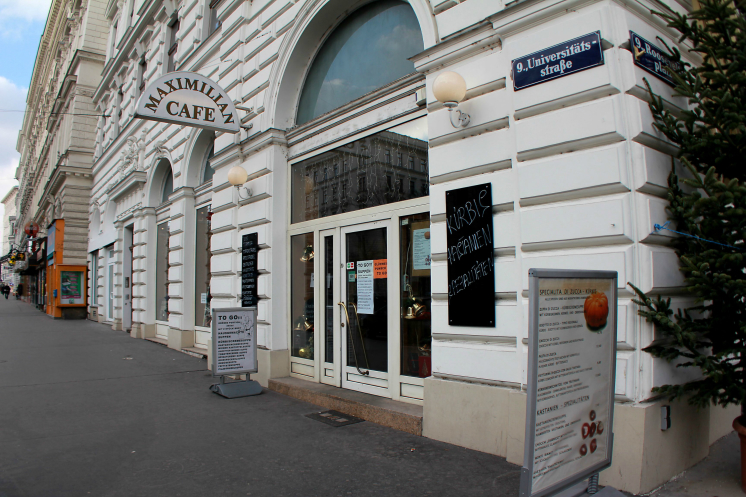 Дорога из Будапешта до Вены заняла немногим больше трех часов, так что решили перекусить; а чтобы лучше ориентироваться в городе, вернулись в район Альсер Штрассе близ нашего отеля. Совсем скоро наткнулись на кафе «Максимилиан», и не зря! Уютные небольшие два зала (для курящих и нет), обслуживающий персонал по-русски не говорит, но понимает; в итоге перекус превратился в настоящее обжорство – мы как всегда не рассчитали с порциями… Заказали по венскому шницелю (ну как без него!!!) со свежими овощами и по кружечке пива – нам принесли огромные блюда со шницелем размером с большое блюдо, картофельным пюре, овощами, приправами…