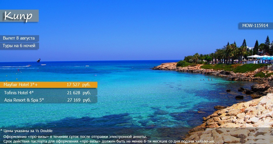 КИПР в августе – от 17 500 рублей!!