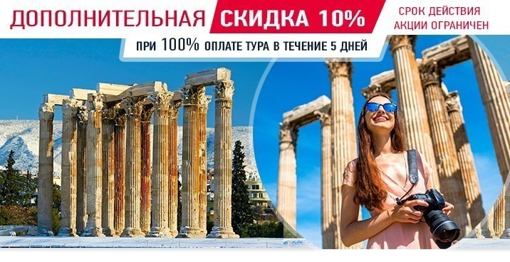 Раннее бронирование в ГРЕЦИЮ - акция минус -10% при 100%-ой оплате тура!