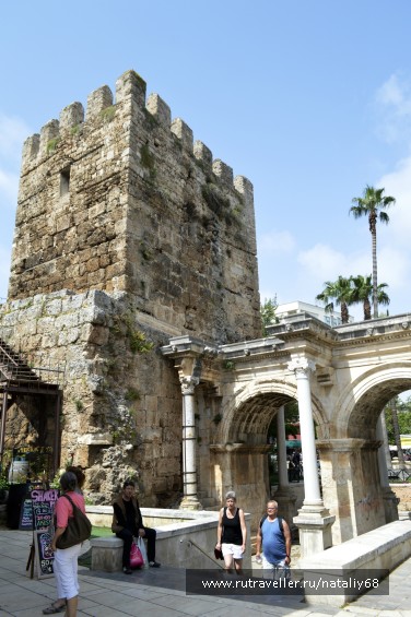 Арка Адриана в каком-то смысле является разделителем времени. Если стоять к ней лицом, то за спиной проходит одна из современных оживленных магистралей современной Анталии. А перед Вами раскинулась Атталея, или древняя Анталия. И получается, что прошлое и настоящее разделены этими великолепными воротами.
