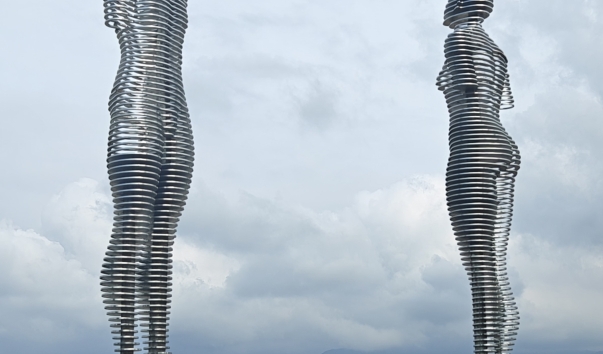 Две огромные фигуры мужчины и женщины, созданные грузинским скульптором Тамар Квестидзе под впечатлением романа Курбана Саида «Али и Нино». Именно этих персонажей и олицетворяют фигуры.