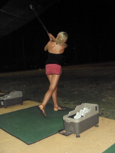 Но зато к концу отдыха муж закидывал шары за ограждение в другой стороне поле, а это что-то около 256 метров!Да и я под чётким руководством мастера стала почти профи.