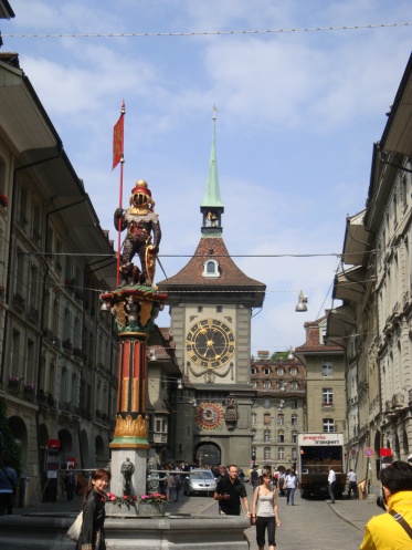 Такое позитивное место, что уходить не хочется. В результате я опоздала на представление на Часовой башне (колокольне Цайтглокентурм), которое начинается за 4 минуты до наступления каждого часа вот уже почти 500 лет. И еще в старом городе очень много интересных фонтанов, интересных своей скульптурной частью — вода там скромно сбегает тонкой струйкой.