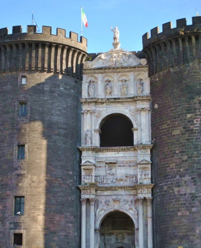 Этот замок, являющийся одним из символов Неаполя, построил король Карл Анжуйский в XIII веке. Он не только был королевской резиденцией, но и крепостью, защищавшей город от врагов. Каждая башня замка имеет свое название. Между Средней и Сторожевой башнями главного фасада находится очень красивая Триумфальная арка, состоящая из нескольких ярусов.