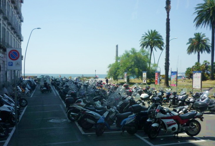 Чем отличается Неаполь, так это полным отсутствием правил дорожного движения. Может, конечно, они и существуют, но соблюдать их не считают нужным. Здесь запросто могут проехать по встречке или вдруг развернуться на двойной сплошной…Водители экскурсионных автобусов, мягко говоря, не любят поездки в этот город из-за повышенного риска, большого количества аварий и, вследствие этого, постоянного напряжения. Частые аварии требуют постоянной смены транспортных средств. Отсюда и соответствующие «достопримечательности» при подъезде к Неаполю – «кладбища» автомобилей. Это не свалки, а ровные ряды аккуратно уложенных машин. Городские власти следят за порядком, ведь за утилизацию автомобиля его владелец должен внести определенную плату. Кстати, очень благодатная почва для мошенников. Надо сказать, что неаполитанцы по своей сути большие хитрецы. Думаю их жизненный принцип: «День без обмана прошел зря!». Исторически сложилось, что здесь высокий уровень рождаемости и многочисленные семьи, поэтому работы на всех не хватает. Приходится что-нибудь придумывать. Например, собирается несколько друзей, свозят свои машины в чисто поле, ставят вывеску, собирают взносы за утилизацию, а потом и след простыл…