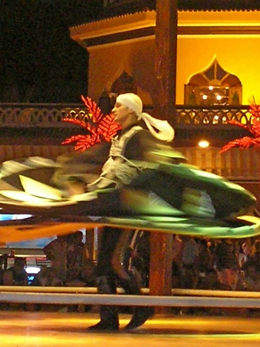 потом перекочевывает на голову и не позволяют исполнителям видеть окружающее. Танец продолжается вслепую! Миг - и юбки сорваны, юноши вращаю их в руках, точно колеса. Получаются вращающиеся песочные часы.