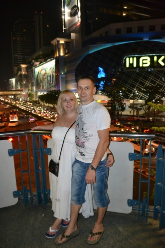 Ловим снова тук-туки (сразу скажу, что для нас самое предпочтительное средство передвижение, хотя на такси было дешевле, но нам нравилось ехать и впитывать в себя одурманивающий запах Бангкока). Вот он, задирая голову и смотря на отель, шляпы спадывали с наших голов. Но кого-то потянуло на рынок, расположенный рядом. Отзывы о нем противоречивые, но нам понра..Если хорошо «порыться» можно найти футболки ( 60-200 батт), шлепки (100-120батт), сарафанчики (по 350 батт), короче «затарились» (почему? Ведь качество там храмает? Да потому что летние вещи привезенные мной из дома, не подходят для Тайланда…в них очень жарко. Да, они одноразовые, ну и пусть…поношу и выброшу). Все –таки мы оказались на смотровой площадке… не впечатлила…почему? Потому что огорожена стеклом в целях безопасности, а хотелось смотреть на все «вживую», не через стекло. Попили коктейль, который входил в стоимость посещения смотровой площадке и стали держать путь в нашему отелю на тех же тук-туках, потому что ножки уже не ходили…