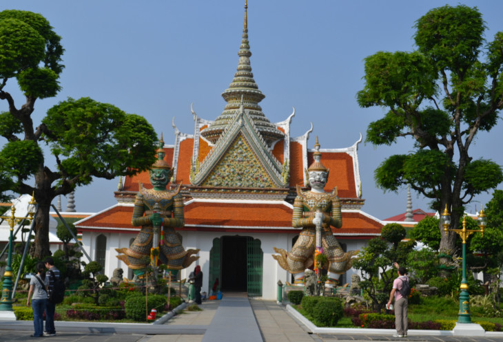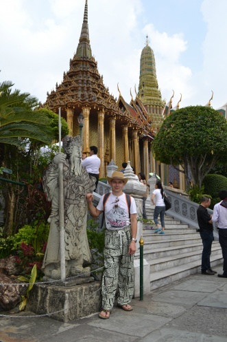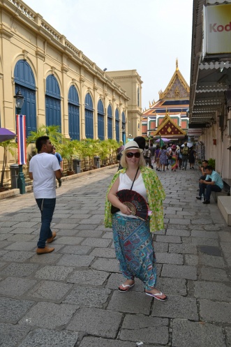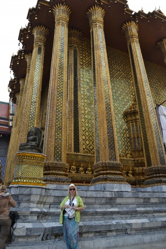 и присела на лавочке в тенечке. Когда пришла моя сестра, первое , что она сказала: вчера Бангкок меня не впечатлил, а сегодня увидев красоту храма Wat Arun, влюбилась не только в Бангкок, но и хочу побывать в Камбоджи. Ок. Камбоджи потом, а сейчас у нас на повестке дня Королевский дворец. Нашли его без проблем. На меня одели рубашку