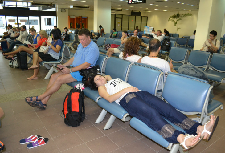 . Очень быстро проходим таможню (при этом наши потери на четверых были минимальны, только одна зажигалка и кока-кола…откуда она вообще взялась? Все наши вкуснятские бутерброды и пицца (заготовленные дома)остались при нас) и попадаем в транзитную зону. Кресла очень удобные, есть лежаки,