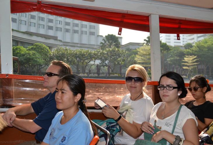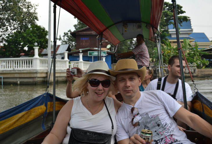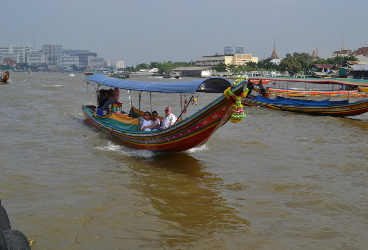 Как только вы вышли из храма, во всех проснулся территориальный критинизм. Причиной тому стало либо палящее солнце, либо красота храмов, либо заметная усталость, а может все вместе взятое, но мы никак не могли определится где находится причал. О слава Будде, через три минуты мы на него вышли и в аренду длиннохвостую лодку для прогулки по клонгам Бангкока (500 батт с человека)