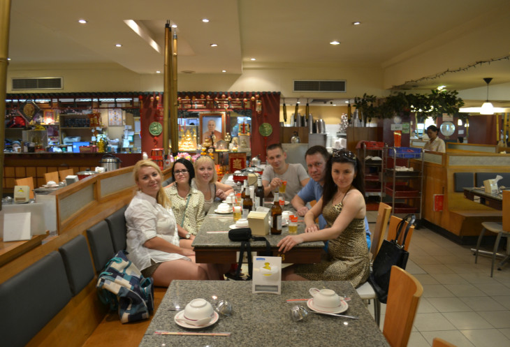 Лишняя потеря времени, скажу я Вам. Все…ну или практически все продают оптом, ну а потом на островах мы покупаем все то же самое , но раза в 2 дороже. Можно купить только детские вещи, там они не плохого качества и недорогие. Мы разошлись по парам…и началось…то одни потеряются, то другие…то кому- то покушать хочется, кому- то деньги поменять . Ужаааааааааас! Все собрались. Куда дальше? Систер моя, непутевая, сказала, что очень хочет попасть в Чайнатаун (китайский квартал), поесть утку по-пекински и…большинство ее поддержало. Все проголодались!Она в твердой уверенности,что знает куда ехать выводит нас в речному трамвайчику.