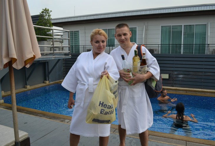 Время уже было позднее, в центр мы попали, но целиком посмотреть его не смогли по причине его скорого закрытия. Пробежали, купили нам с Наташкой платья по 700-750 батт, чемодан 1750 батт (отличного качества), ну и всякие безделушки в виде очков, заколок, украшений, сумок, магнитиков, часов… Пока я была в состоянии, высчитала во сколько нужно вставать утром, чтобы не опоздать на самолет , который доставит нас в Пхукет. А вечером проверенная программа под названием «прощальная вечеринка » на улице возле рецепшина.