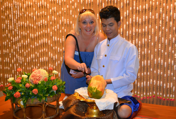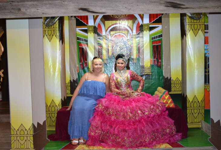 Мы с мужем всегда очень активно отдыхаем, решено было ехать на следующий день в национальный парк Кхао Лакх (1700 батт на одного), а вечером наши мужчинки собрались на тайский бокс, стоило мне только обмолвится, что сегодня выступает наш соотечественник. Ну что же, скучать я не люблю, поэтому я поехала на шоу Сиам-Нирамит (места-серебрянные, в стоимость входит ресторан, трансфер -2050 батт), а Натали решила отдохнуть от нас всех. Трансфер опоздал на 40 минут. Конечно же когда прибыл, водитель извинялся как мог, но мне этого времени хватило, чтобы позвонить родственникам и друзьям и кратко рассказать про наш отдых, поэтому опоздание трансфера мне было не в напряг. Села в микроавтобус, разговорились с остальными. Все брали билеты на шоу у тур.операторов. Намного дороже, чем я. Разница была только в том, что когда нас привезли на шоу, их встретил представитель от тур.оператора, отдал билеты в ресторан, прилепил наклейку и отправил наслаждаться этим удивительным вечером. Меня же встретила тайка, проводила в офис, забрала билет и через пять минут так же прилепила наклейку на платье( где указано было ряд и место, а также сектор, где меня будет ожидать трансфер в обратную сторону), выдала билет в ресторан, объяснила во сколько начнется шоу. Спасибки..я ушла. Так как я приехала одна, сама себя фоткать не могла, мне в этом помогали секьюрити.