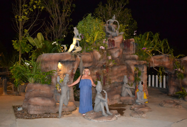 Нашла его без проблем по указателям. Мне выделили столик. Поужинала, объелась всяких местных сладостей. У меня в последнее время и так обнаружить талию не легко, ну да ладно… издержки лечения на Родине. Пора двигаться на шоу, секюрити увидев мой фотоаппарат, разворачивает меня и направляет по другой дорожке, где меня передает в руки, другого сотрудника, фотоаппарат у меня изымают, заворачивают в сумку и отдают номерок, по которому я получила свой ф\а после представления. Шоу меня поразило своим размахом. Короче не буду писать что и как происходило, искренне желаю сходить на шоу самим, чтобы насладиться этим зрелищем. Под впечатлением, подхожу к таечке, которая (как я поняла) по списку в руках рассаживает в трансфер, выпячиваю грудь, на которой красуется наклейка, она находит меня в списках по названию отеля и провожает в микроавтобус…. Как потом оказалось не в тот. Микроавтобус заполнился, все начали разъезжаться, наш и еще один стояли долго, все уже начали возмущаться. Через какое-то время заглядывает к нам та же таечка и просит каждого назвать отель…когда очередь доходит до меня, она радостно начинает махать руками и просить меня выйти из автобуса. Зашибись подумала я. Наверно я им так понравилась, что они хотят меня оставить, ладно хоть деньги с собой…уж очень хочется в итоге попасть к своему мужу все-таки. Выхожу, она просит извинения и пересаживает меня в другой автобус…ну все…а я уж подумала…ладно не стать мне звездой шоу, поеду к любимому мужу. Наташка с радостью сгребла меня в свои объятия. Приехали мужья…тоже под впечатлением. Ну, все пора ложится спать…завтра нас ждет национальный парк Кхао Лакх….Продолжение следует.