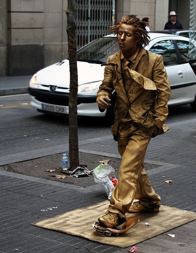 Здесь собираются забавные персонажи, исполняющие роль живых скульптур. Очень сложный грим - ежедневная процедура перед работой.