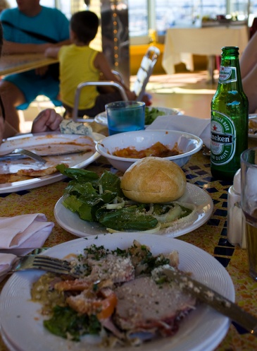 Во время обеда наблюдаем, как корабль заходит в порт.