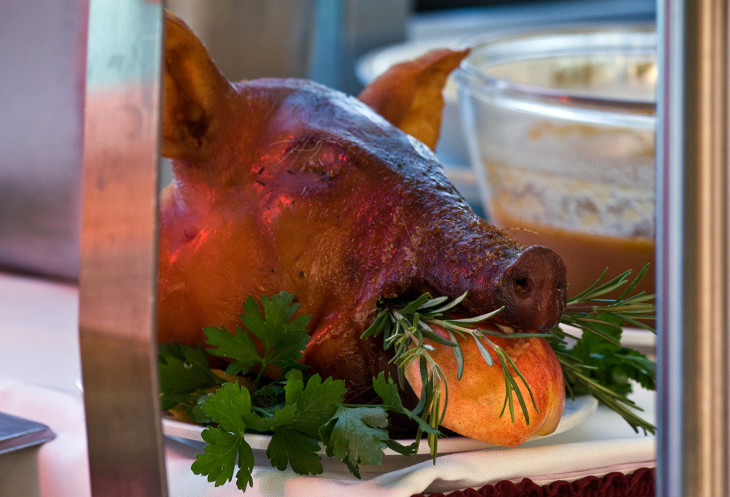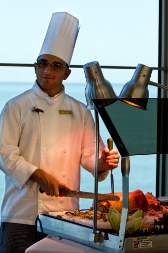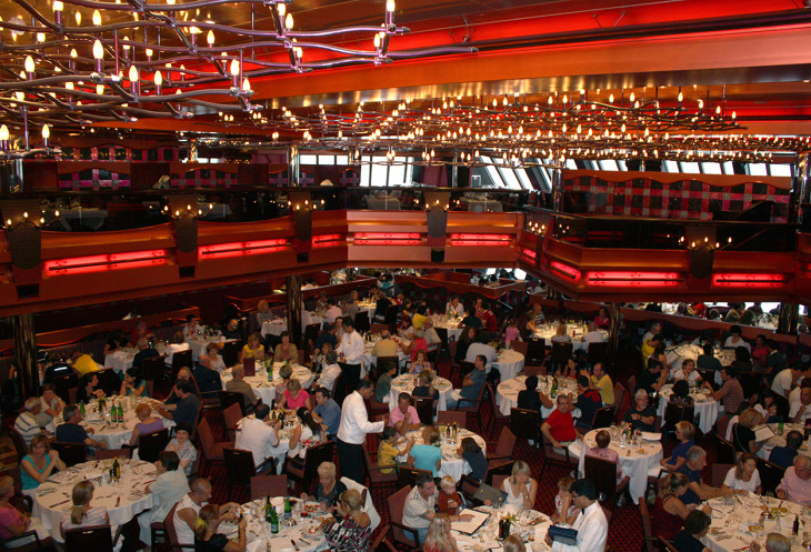 В ресторане за каждой семьёй или компанией закреплён свой столик. Когда приходишь на ужин садишься за свой стол и официанты начинают приносить заказанные заранее блюда. Напитки записывают на ваш счёт.