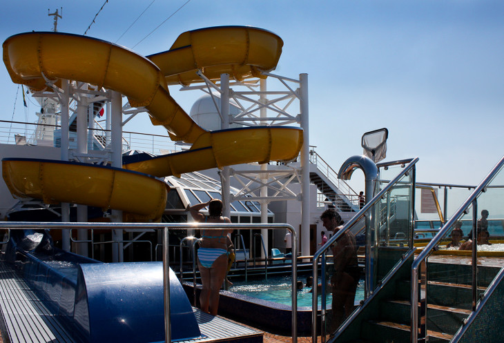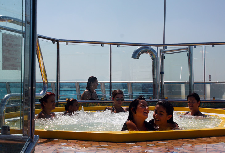 По мере приближения к Африке, погода начинает налаживаться. И в первую половину дня мы решили позагорать и покупаться в бассейнах.