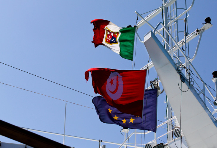 Поднимаемся на верхнюю палубу к открытому бассейну. Появился флаг Туниса, а это значит, что следующая страна - Тунис.