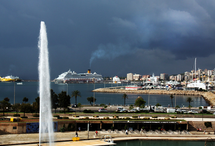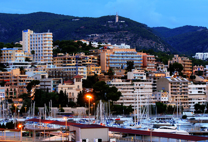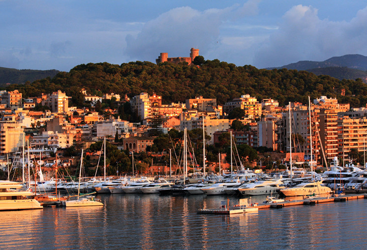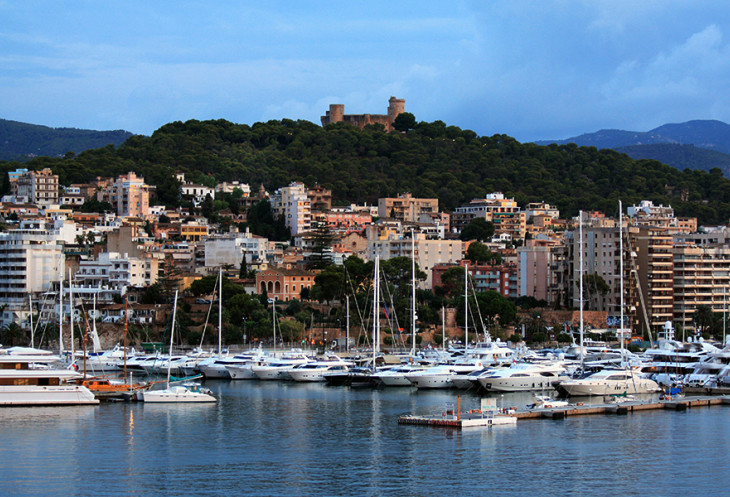 С большой терассы, открывается умопомрачительный по красоте вид на окрестности и восточную часть порта Пальмы де Майорки.