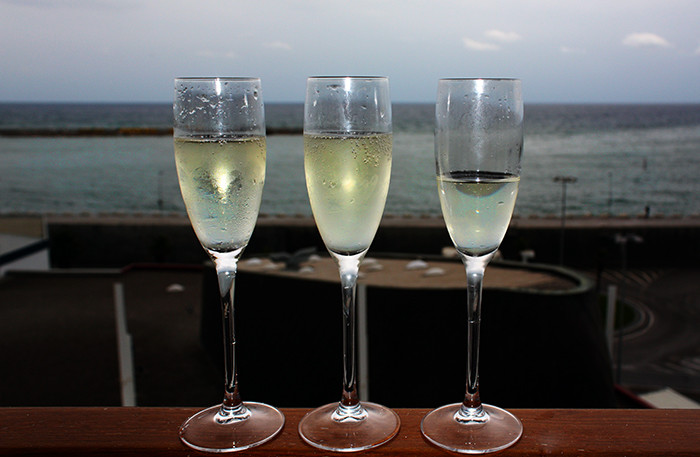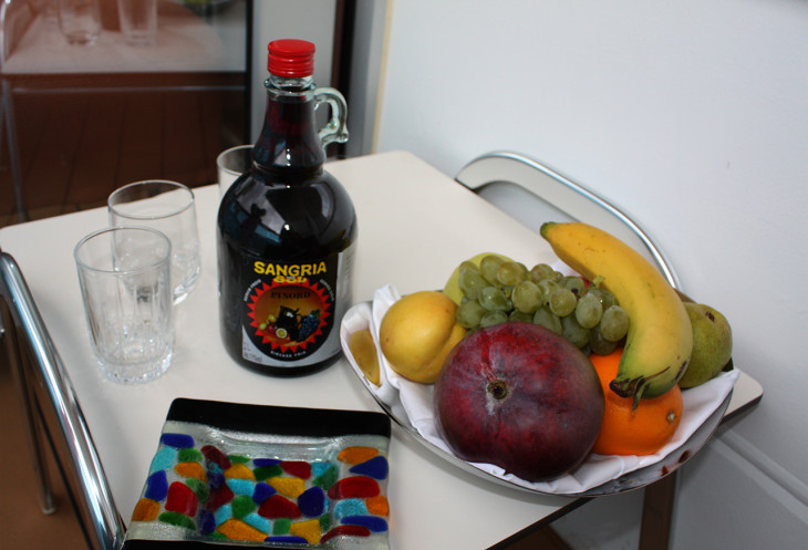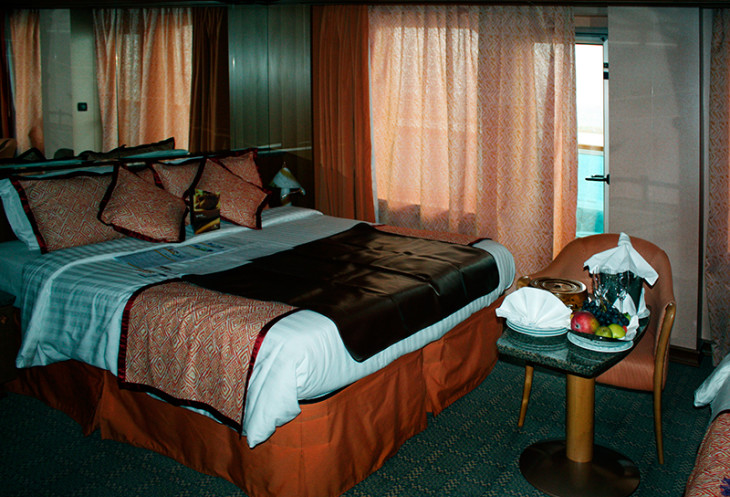 Нас провожают до каюты. И вот мы на месте. В каюте ждёт угощение... Шампанское, фрукты и канапешки.