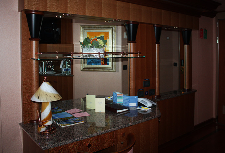 Поднимаемся на борт... При посадке необходимо предъявить специальную пластиковую карточку Super Charge, которую выдают всем пассажирам при регистрации на корабль, в обмен на паспорт. Таким образом ведётся учёт вышедших и вошедших на борт. На карту кладётся депозит, в размере 150 евро и в течение всего круиза вы пользуетесь ею для оплаты покупок или услуг. Окончательный расчёт уже при высадке. На лайнере есть много магазинов, втом числе и дюти фри, а так-же СПА, казино...Вообщем потратить деньги есть на что...