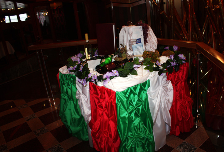 Находим наш ресторан. Ужины проходят в ресторане NY!NY! Судя по оформлению, сегодня итальянский вечер. Вообще каждый день кухня, какой-нибудь новой страны.