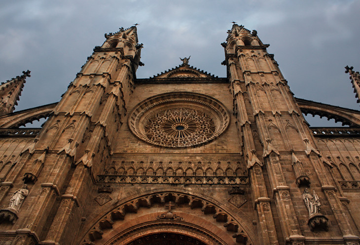 "В Пальме-де-Майорке, долгое время находившейся под властью мавров, причудливым образом смешались традиции арабской и христианской культуры. Главным христианским памятником Пальмы можно назвать готический Кафедральный собор, расположенный в сердце города неподалеку от набережной. Это грандиозное сооружение начали строить, что символично, на месте мечети еще в XIII веке при Хайме I: именно он во время Реконкисты отвоевал Майорку у мавров. Однако закончили строительство лишь к началу XVII века. В начале XX века над реставрацией собора трудился сам Антонио Гауди."