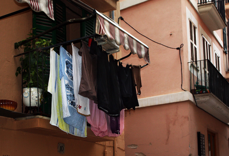 Идём мимо домиков, с традиционно сохнущим бельём на их балконах.