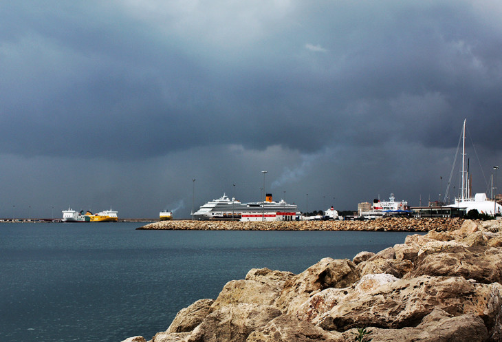 Идём по набережной в направлении порта. Кажется, что до корабля рукой подать...Но не тут-то было... Мы зашли на территорию порта, но не с той стороны и прохода к кораблю там не было. Я уже начала паниковать, потому что время нас поджимало и единственным вариантом добраться вовремя - это срочно поймать такси.