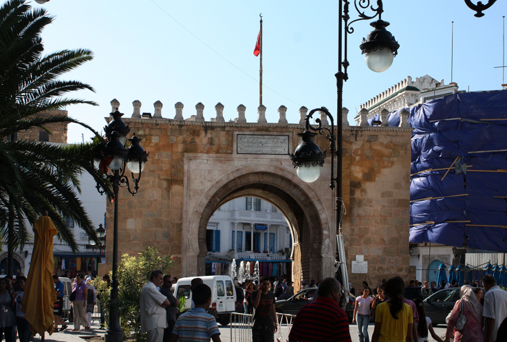 Центральная улица Туниса, живописное авеню Хабиб Бургиба, идет от ворот Баб эль-Бахар ("французские ворота", XIII в.) Медины до озера Эль-Бахира.