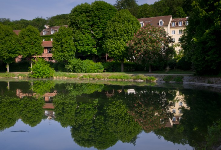 Отель расположен в тихом пригороде Парижа, между Парижем и Версалем, в окружении лесов и прудов, правда одной стороной он выходит на проезжую часть, не сильно в общем напрягающую. Отель тоже очень приятный, с хорошим СПА, но самое главное, чем запомнился нам этот отель – его восхитительные рестораны и кафе: Cabassud, les Paillotes и Café des Artistes et des Pêcheurs. Я так поняла, съезжается туда со всего Парижа народ, потому что в наш первый вечер мы не смогли там поужинать, поскольку не забронировали столик заранее… Нас отправили поискать ресторан в округе и, честно говоря, это был печальный опыт… Естественно, на все следующие вечера мы тут же забронировали столики, и не пожалели. Это было потрясающе вкусно! В любом из указанных мест, а в кафе еще и достаточно бюджетно, около 100 евро за ужин на троих с двумя бокалами вина. Завтраки тоже были в кафе и очень вкусные. Обстановка приятная, столы и внутри помещения, и во внутреннем дворике, с беседками увитыми цветущими розами…. В общем, красота и вкуснота! Следующий отель Chateau Laloin. Отель в окрестностях Блуа. Этот отель был, конечно, попроще двух других, но и значительно дешевле. Самым большим недостатком его, я считаю отсутствие ресторана (но нам очень повезло с рестораном в Блуа, и мы питались там), а завтраками нас кормили в отеле вполне приличными….