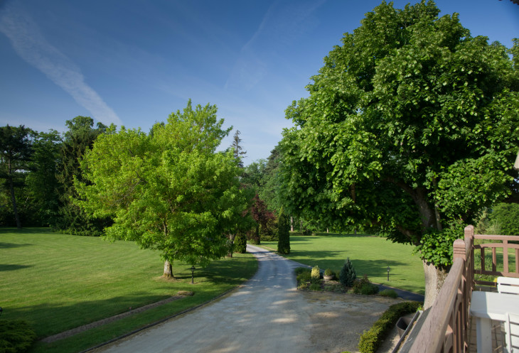 Итак, наше первое пристанище - Chateau des Bondos. Маленький очаровательный отель-замок с чудесным парком 7 Га. Он находится в часе езды от Парижа. Далековато для экскурсий по городу, однако, мы планировали ездить из этого отеля в Диснейленд, до которого добирались за 20 мин на машине. Зато вы себе просто не представляете, каким удовольствием было возвращаться в эту умиротворяющую тишину из диснейлендовской «бестолкотни». Честно говоря,  была бы моя воля, я бы дня три-четыре вообще отсюда никуда не выезжала. Пение птиц, журчание фонтана, запах скошенной травы и роз, ни души вокруг…. А вид с балкона номера такой, что отделаться от навязчивого вопроса «Зачем нам куда-то ехать», было невозможно. Интерьеры отеля тоже очень приятные.