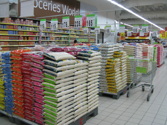 Упаковка 5 кг и более; разные цвета по краю упаковки – разные сорта. Здесь же можно купить и фрукты по приемлемой цене. Если сравнить с «Tesco Lotus», то здесь и выбор больше и цены ниже.