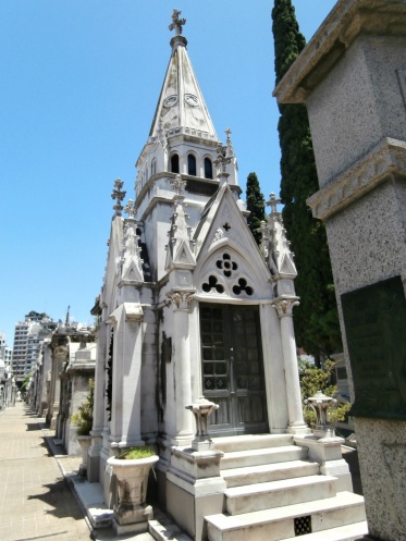 Склеп семьи Dorrego Ortiz Basualdo) считается самым грандиозным на всем кладбище, он был построен французским архитектором в форме часовни.