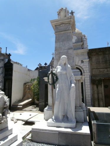 Главной же туристической достопримечательностью района является знаменитое на весь мир кладбище Реколета. Именно это кладбище я хотела увидеть больше всего, из всех намеченных целей в БУэнос Айресе. На кладбище покоится аргентинская знать. Многие погребения украшены архитектурными изысками и скульптурами святых.