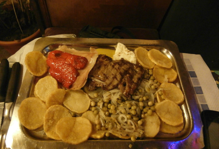Нас встретил добродушный хозяин кафе, старичок лет 60-65. Меню было только на испанском, но ясное дело- иностранцы заказывают bife (стейки)