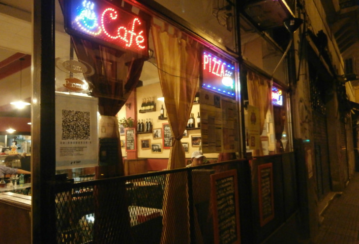 Вечером мы отправились искать кафе, где можно будет поужинать и выпить вина. При выборе кафе я всегда отдаю предпочтение небольшим заведениям, среди посетителей которых основное количество пришедших– местные жители. Мы нашли такое кафе, которое даже не имело названия)