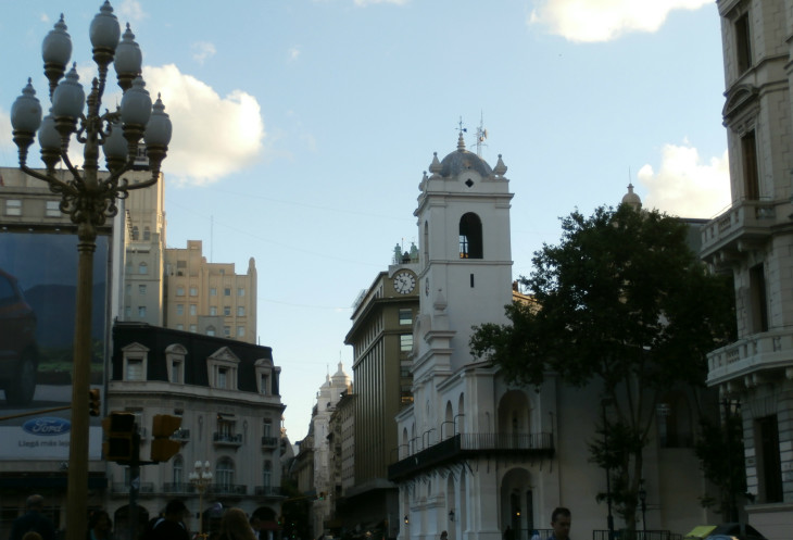 После посещения кладбища мы решили отправиться в центральную часть города- площадь де Майя, сердце города и вообще богатое событиями место. Площадь Майя окружает множество достойных внимания построек: Розовый дворец (Casa Rosada), бывший городской совет, а ныне музей Кабильдо (Cabildo), Национальный банк Аргентины и пр.