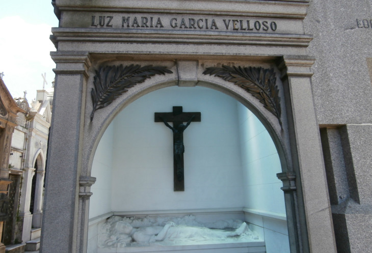 А это могила девушки Лус Марии Гарсия Велоссо, умершей в 15 лет от лейкемии. Скульптура представляет девушку спящей, поэтому ее и называют «спящая красавица»
