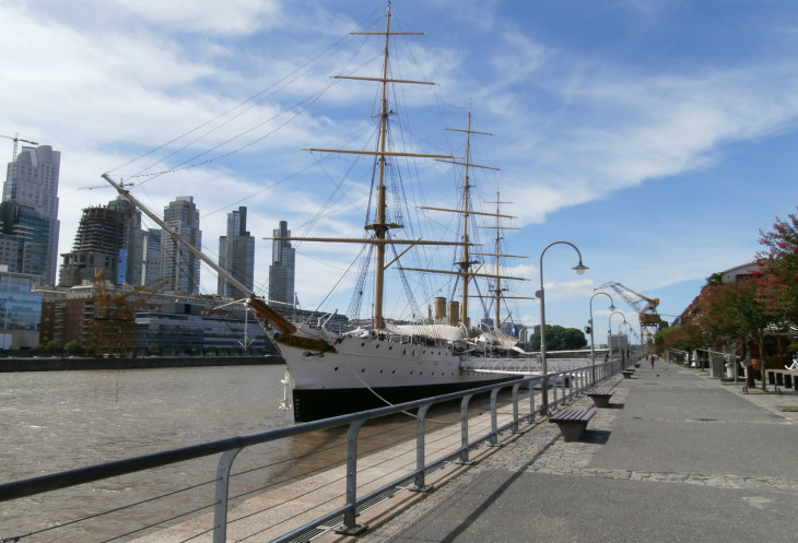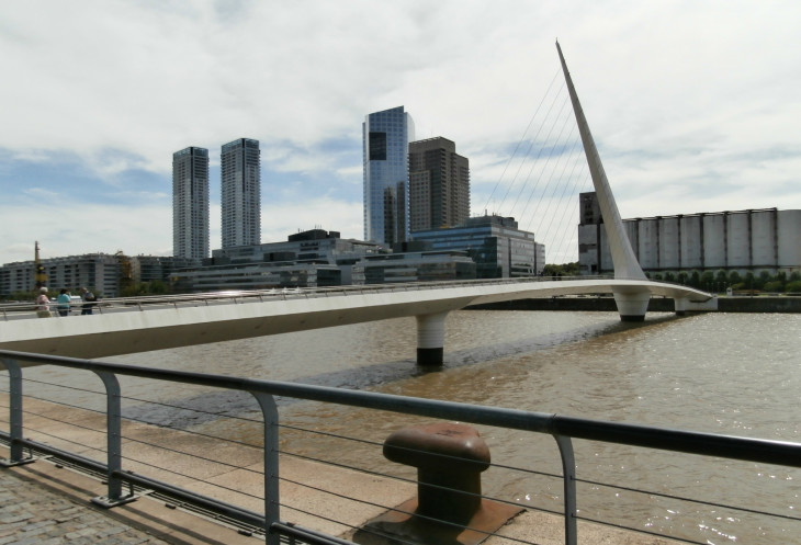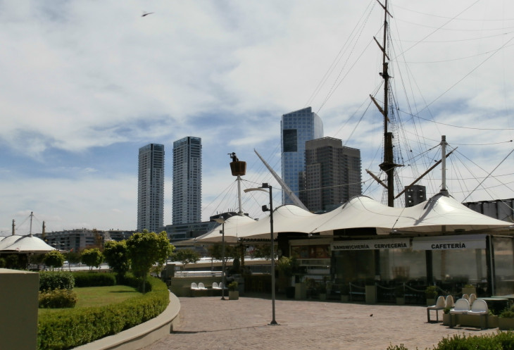 Постепенно мы вышли к району Пуэрто-Мадеро. Пуэрто Мадеро - самый новый район города, построенный в 90-х годах в зоне заброшенных портовых доков и складских помещений. На сегодняшний день это один из самых посещаемых туристами районов с многочисленными гостиницами, ресторанами, набережными и жилыми высотными домами. Все его улицы носят имена женщин. Архитектура района - это сочетание высотных современных башен и домов со старыми зданиями бывшего порта Буэнос-Айреса, полностью поменявшими свой старый облик на новый, современный