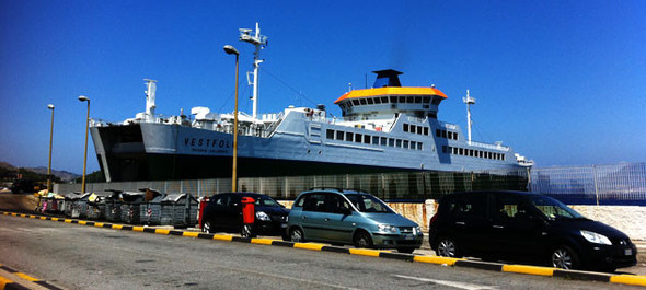 Поплутав по набережной города, открыв рты, мы решили выяснить дорогу в порт у коренных жителей. Естественно не обошлось без тотального незнания английского «No Parlamo Inglesi» со стороны аборигенов. Благо, второй день на машине в незнакомом месте, был гораздо легче в смысле ориентирования на местности. Дорожных знаков с указанием куда ехать в этом городе было предостаточно и вскоре мы приехали на территорию порта. Извилистая дорога и знаки с непонятным содержимым вывели нас к контрольному пункту. К моменту подъезда к аветному шлагбауму наше желание бороздить просторы морские на пароме плавно свелось на нет. Попав на территорию порта и покатавшись около парома мы решили продолжить маршрут по побережью острова вверх на север.