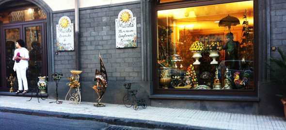 В этом мультинациональном городе мы наткнулись на лавку с керамическими изделиями из города Кальтаджироне. На Сицилии это их ВСЁ, после вина и лимонных плантаций. Каждая керамическая вещица практически произведение искусства и стоит очень даже недешево, несмотря на близость расположения завода ко всем конечным точкам распространения на острове.