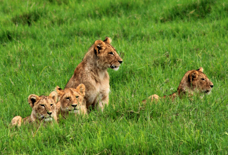 А через некоторое время надолго зависаем, разглядывая семейку из нескольких львиц и 7-8 львят.