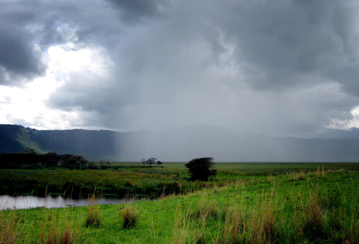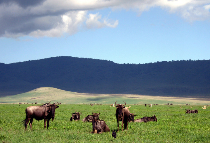 Нгоронгоро — огромный кратер в Танзании на краю саванны Серенгети, возникший в результате коллапса крупного вулкана около 2,5 миллионов лет назад. Глубина кратера составляет 610 м. Его края возвышаются на 2286 м над уровнем моря. Диаметр кратера Нгоронгоро составляет до 21 км и его общая площадь насчитывает примерно 265 кв.км. На дне кратера расположено озеро Магади, знаменитое популяцией фламинго. Кратер Нгоронгоро уникален тем, что за многие годы в нём образовалась своя собственная среда обитания для многих видов животных, которые не имеют возможности выбраться наружу.