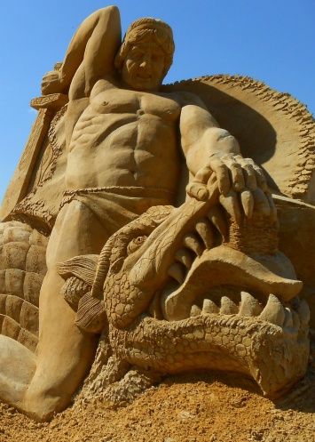 И затем начинается работа скульптора. Дождь, солнце, ветер действуют разрушительно только на этапе создания скульптуры. После окончания работы поверхность скульптуры многократно опрыскивается клеевым раствором, и после высыхания скульптуры ей уже не страшны природные явления.