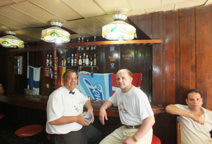 Попытался спросить, но, ни кто не понимает. Пока я продумывал язык жестов ко мне подошёл кубинец, который обратил внимание на русскую речь и фуражку с надписью «Санкт Петербург». Как выяснилось, он закончил политех в Питере и влюблён в этот город и нашу страну, был бы счастлив, побывать там ещё.