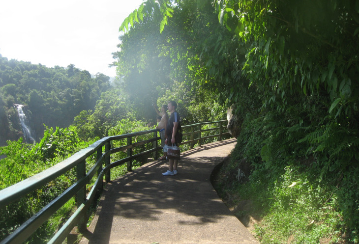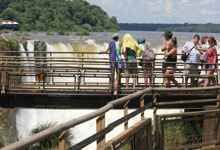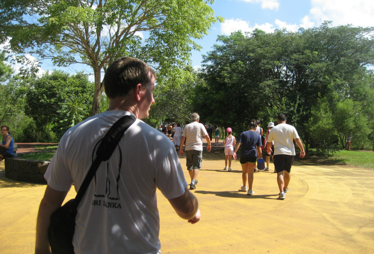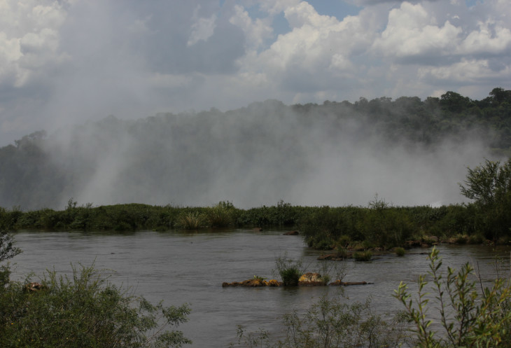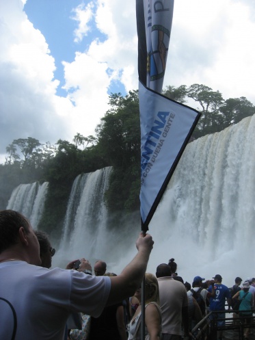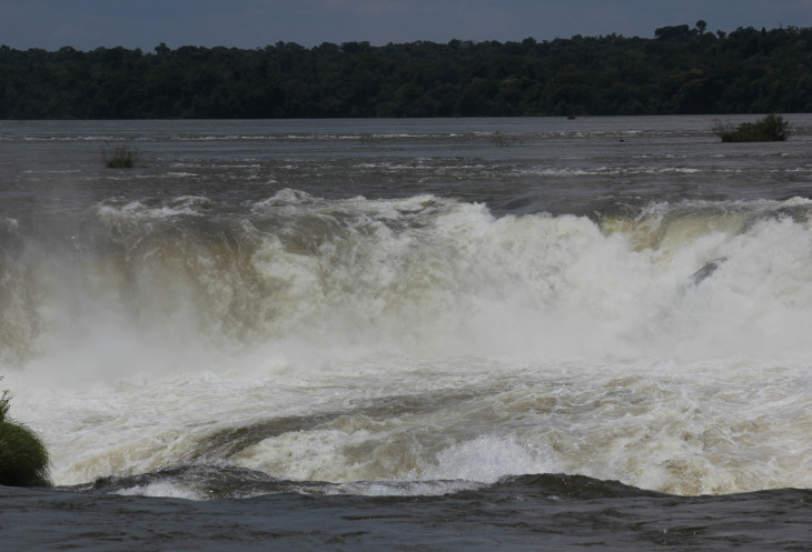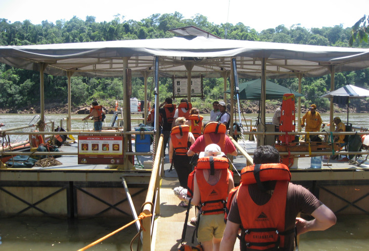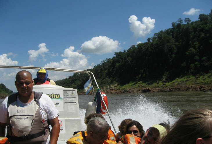 Вылезли мы к дороге, сели в автобус и помчали к выходу, а затем к отелю... На ужин хозяйка предложила нам несколько мест на разный бюджет, мы выбрали ресторан Буффало Бранко (родизио.58реалов с человека (без напитков) с трансфером). Хорошее местечко. Отвезли - привезли, спать..... На утро нас ждала Аргентина!!!!!!!! По опыту 1го дня мы решили поберечь силы и поехали на машине от отеля. На границе водитель сам ходил штамповать паспорта, нам не пришлось жариться и ждать автобусов. Он же покупал билетики и брал нам заветное путешествие на лодке. Эвелина (хозяйка отеля) подробно рассказала нам в какой последовательности гулять по парку, чтобы везде успеть, спасибо ей!!! Итак, 1м пунктом лодка. Мы дошли пешком до отправной точки и поехали на авто (колонна из открытых тачек типа уазиков) к реке. По дороге гид рассказывала о парке, о флоре и фауне, мы засыпали......