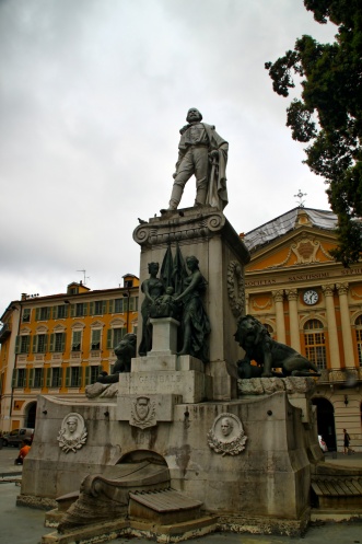 Площадь Массена просторна и удивляет безликими фигурами, возвышающимися над ней…которые символизируют материки… не поняли мы этого, фигур 7 и они двух типов: одни обнимают колени, другие просто на них сидят…что имелось в виду – мне не понятно. Днем эти фигуры достаточно не уместно смотрятся на площади, но ночью придают ей шарма.