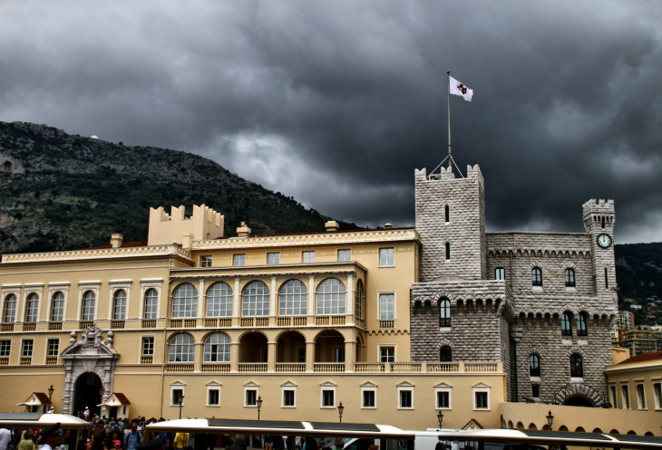 Близ Монако тучи на небе стали сгущаться, и как оказалось, все они двигались в Монако и задержались у гор, однако дождя так и не случилось, что порадовало.